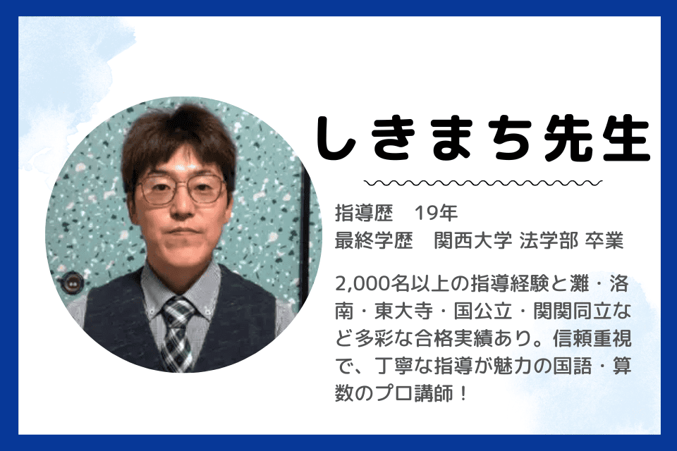 講師のしきまちです。大学1年生から現在まで小中高生を指導しています。