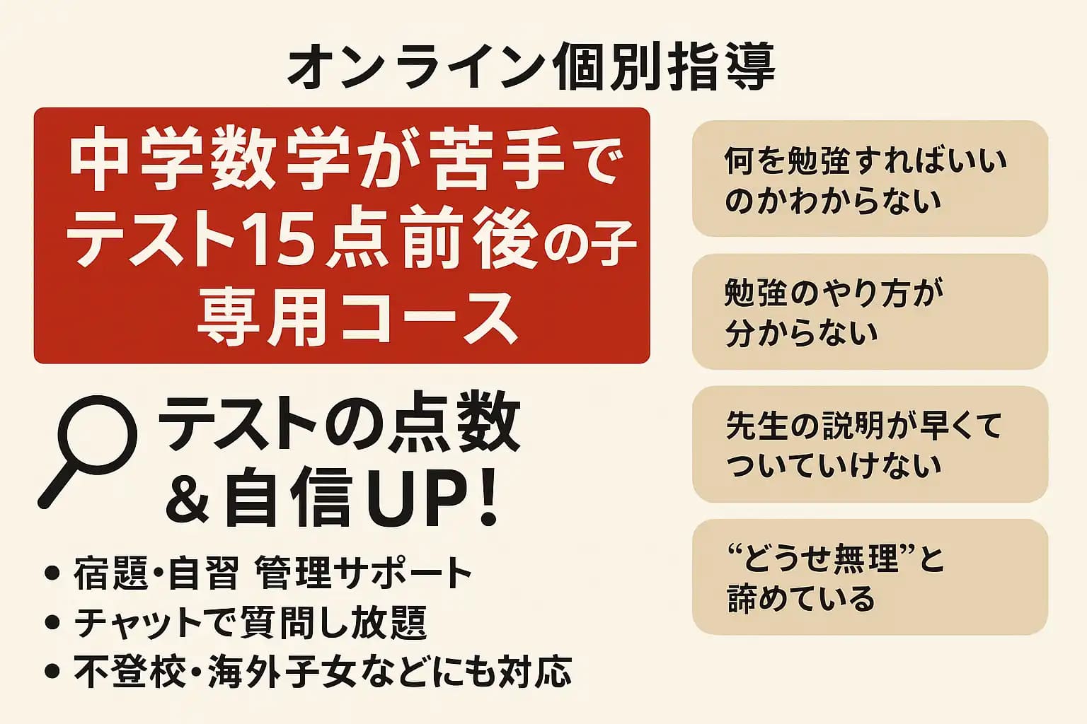 中学数学オンライン個別指導|赤点克服と定期テスト15点UP塾