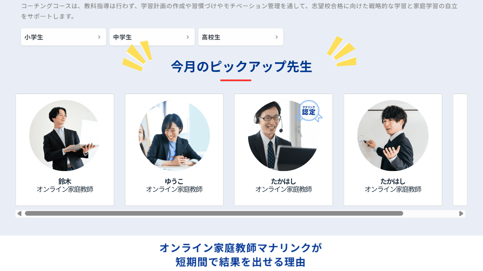 ピックアップされた先生は、マナリンクで"ご家庭が最も閲覧するページ"であるトップページにて、1ヶ月間紹介させていただきます!
