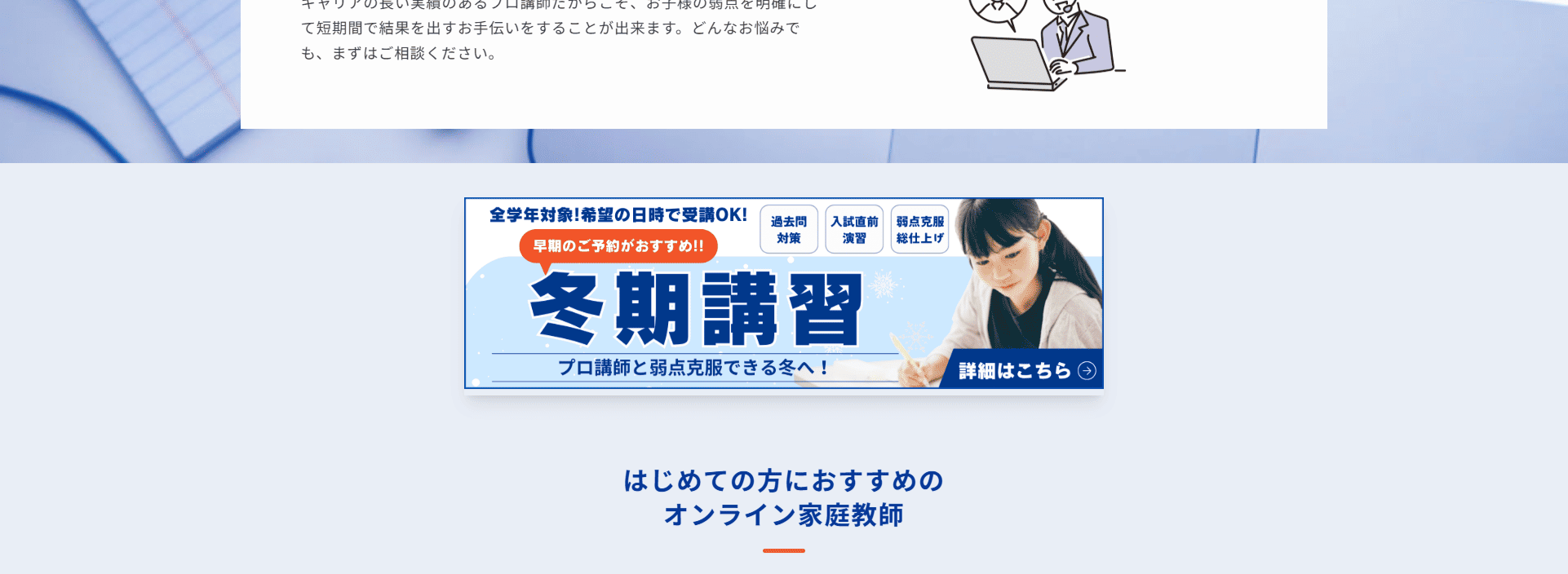 そのため、今こそ、冬期講習コースの公開がオススメです。